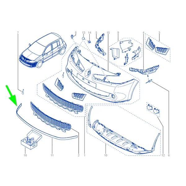 Genuine Renault Part, One Piece Rubber Front Splitter to replace damaged or missing parts.